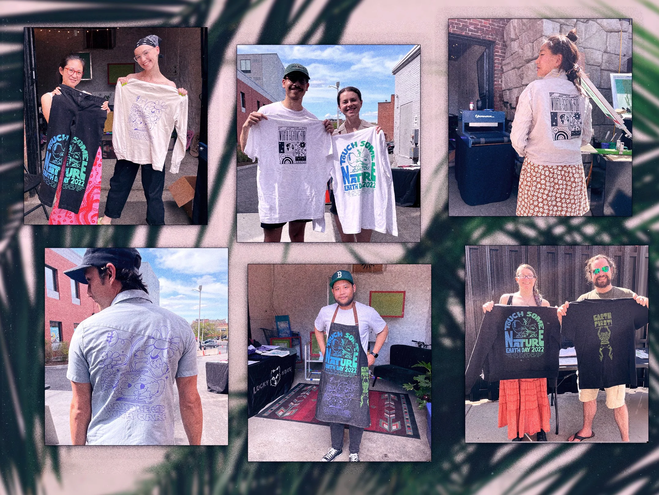 Each year Adam, Josh, Jill and I create an earth inspired art piece and host a live-printing event. People bring old garments to print new designs on. The goal is to give new life to old clothing while raising funds for local charities.
