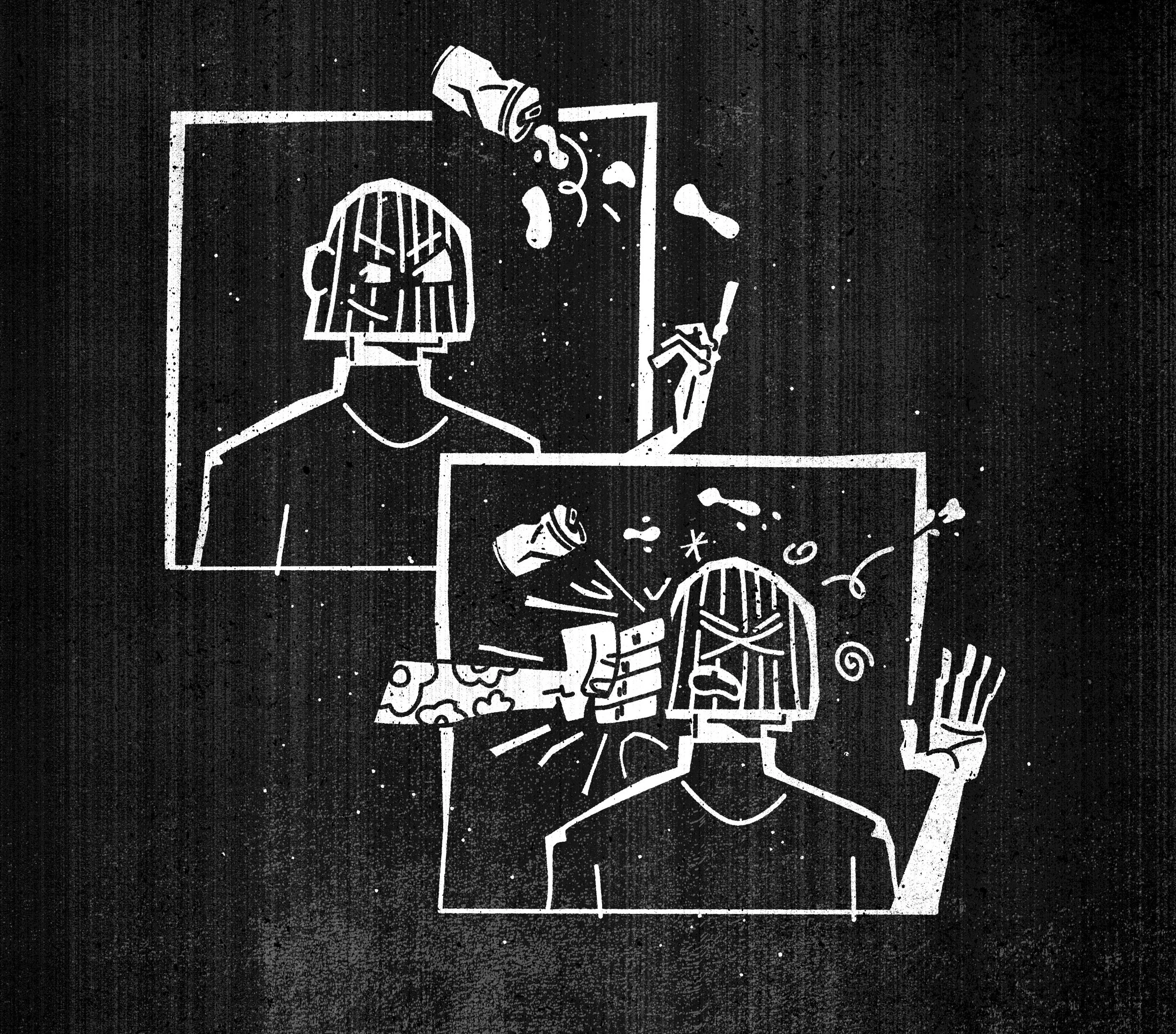 In order to print quickly on all the visitors goods, we limit the art to one color. This created clever solutions with halftones and inverted colors.