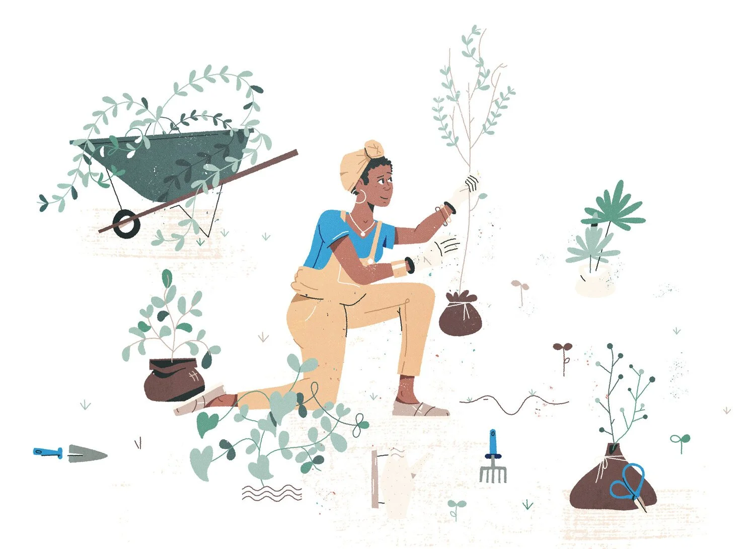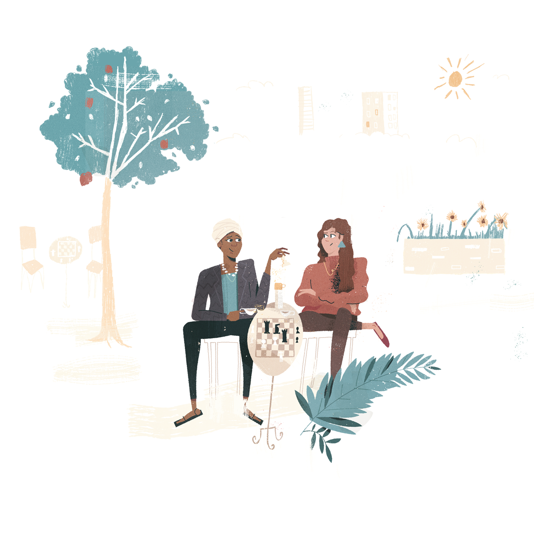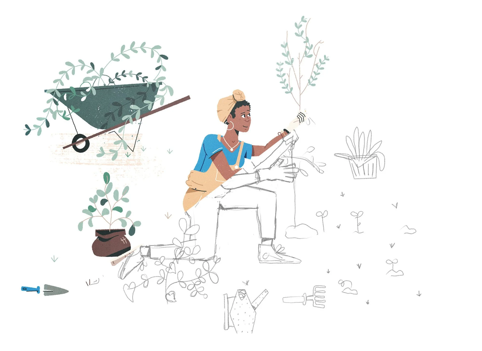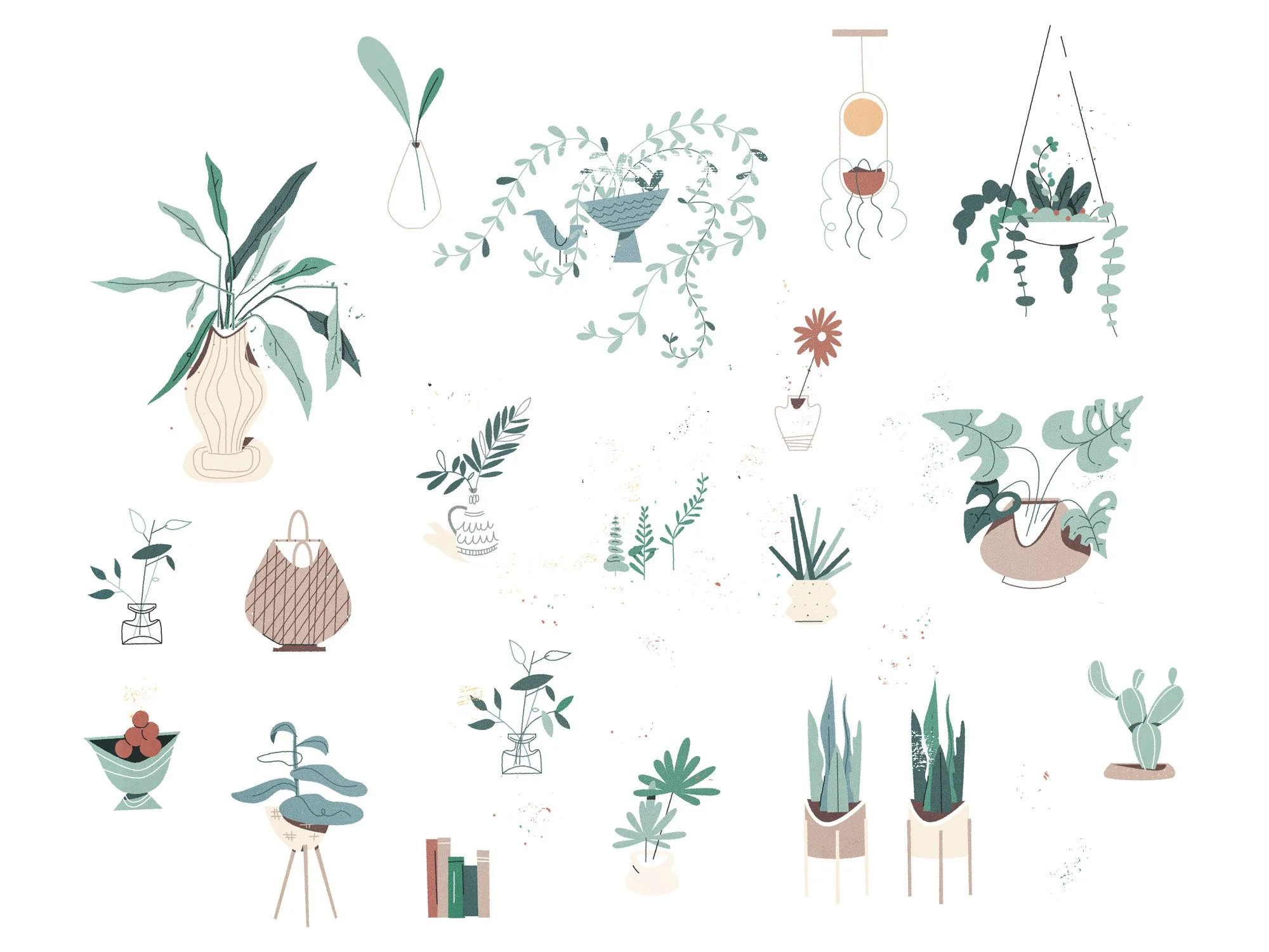 With the potential of multiple people working on the brand at once, creating a system was important to help illustrators (or even myself) keep everything looking and feeling consistent. By focusing on the hierarchy of people, then space, then plant life, we had guidelines that answered a lot of questions when beginning a new visual.